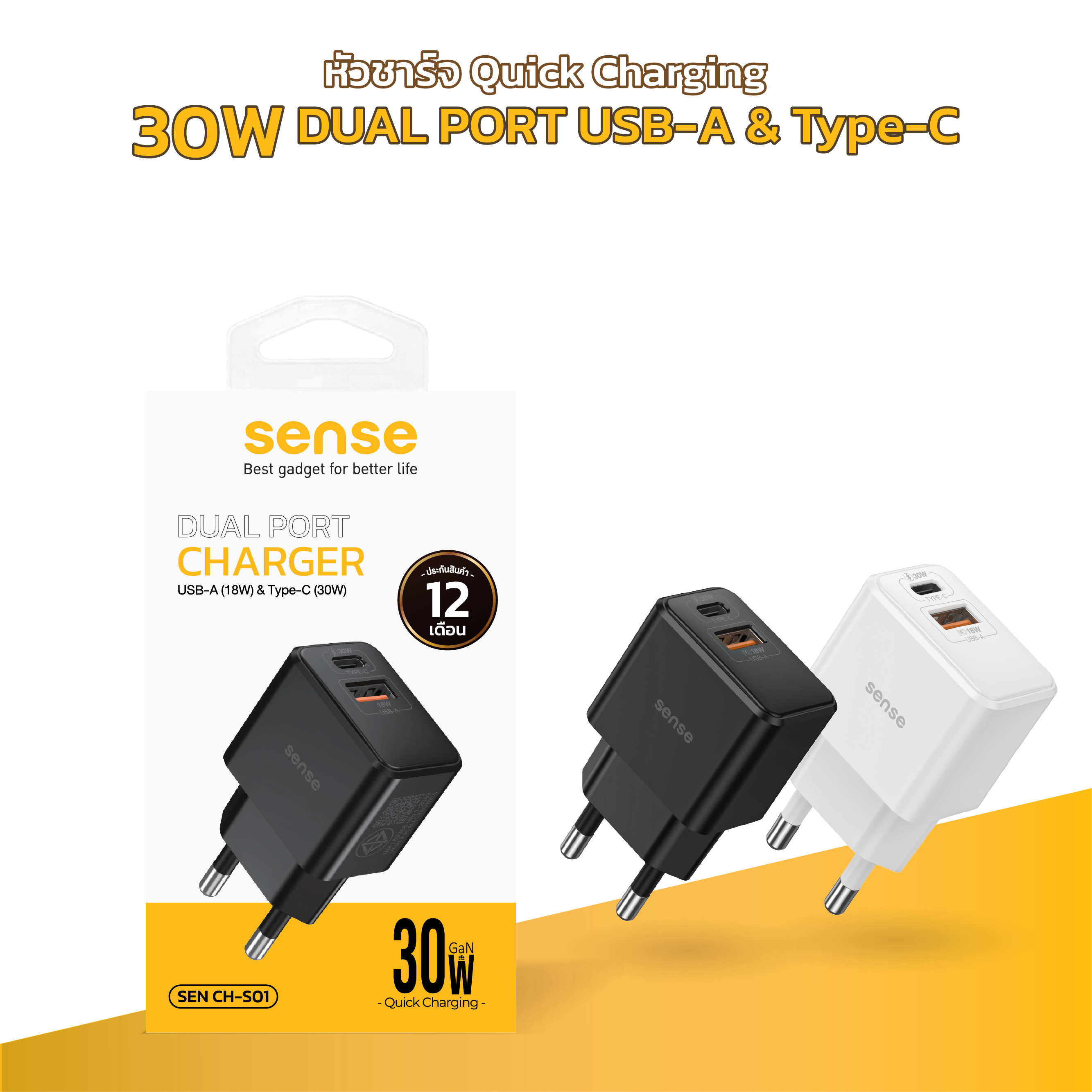 จ่ายไฟสูงถึง 30W ชาร์จได้ 2 อุปกรณ์พร้อมกัน USB-A (18W) , Type-C (30W)